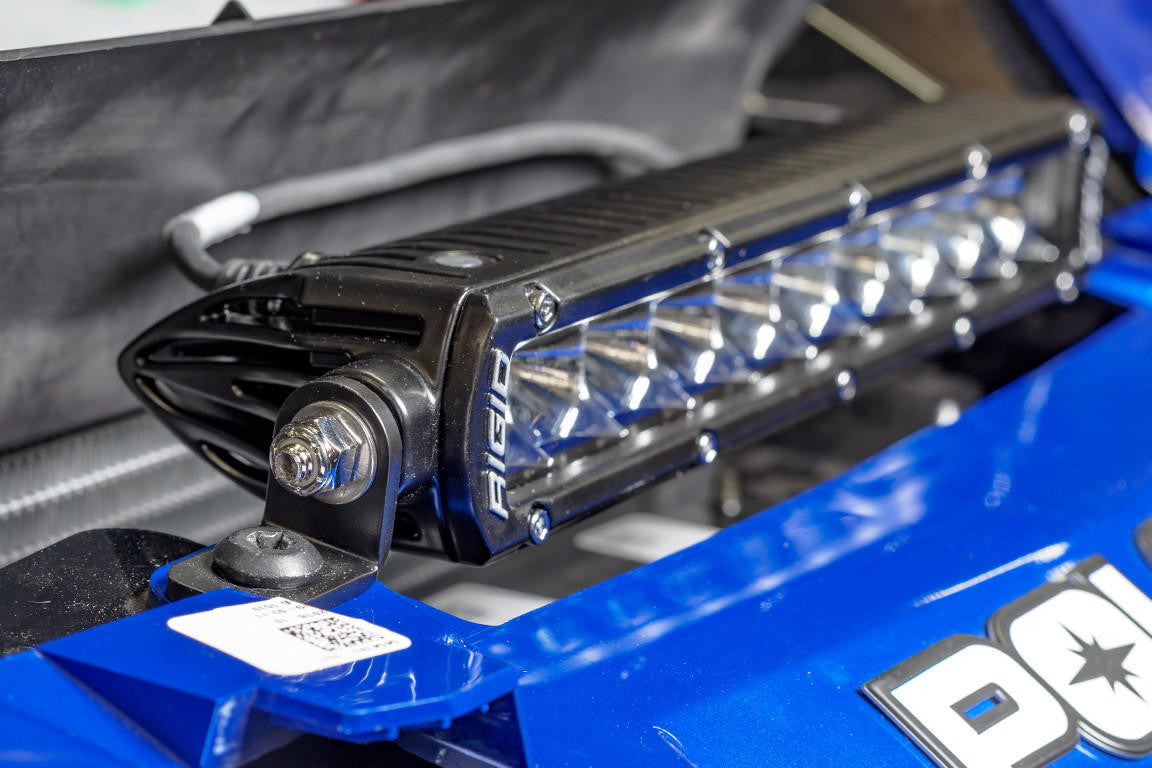 The UTV INC ‘19+ Polaris RZR XP Turbo & Turbo S Hood Grill Single Row 10” LED Light Bar Mounts will allow you to easily, and quickly install a Rigid (or like sized) single row LED light bar behind the hood grill on your 2019 and newer Polaris RZR XP Turbo and Turbo S SXS model. CNC laser cut steel heavy duty tabs are powder coated black and sold as a pair. Mount to the chassis using stock Torx hardware.